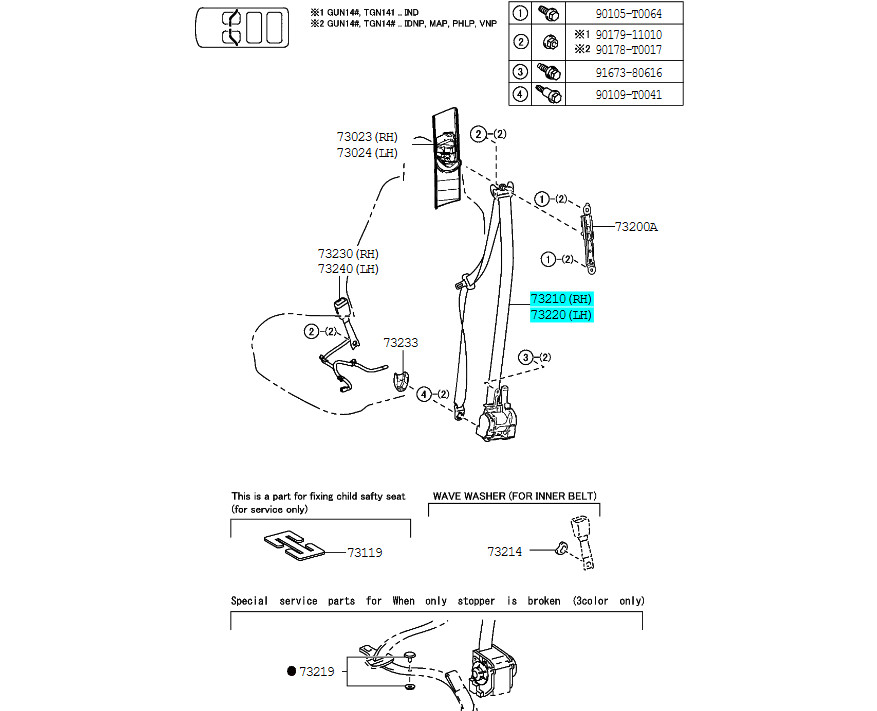 Dây đai an toàn trước Toyota Innova 2017- RH | 73210-0KC00-C0 732100KC00C0